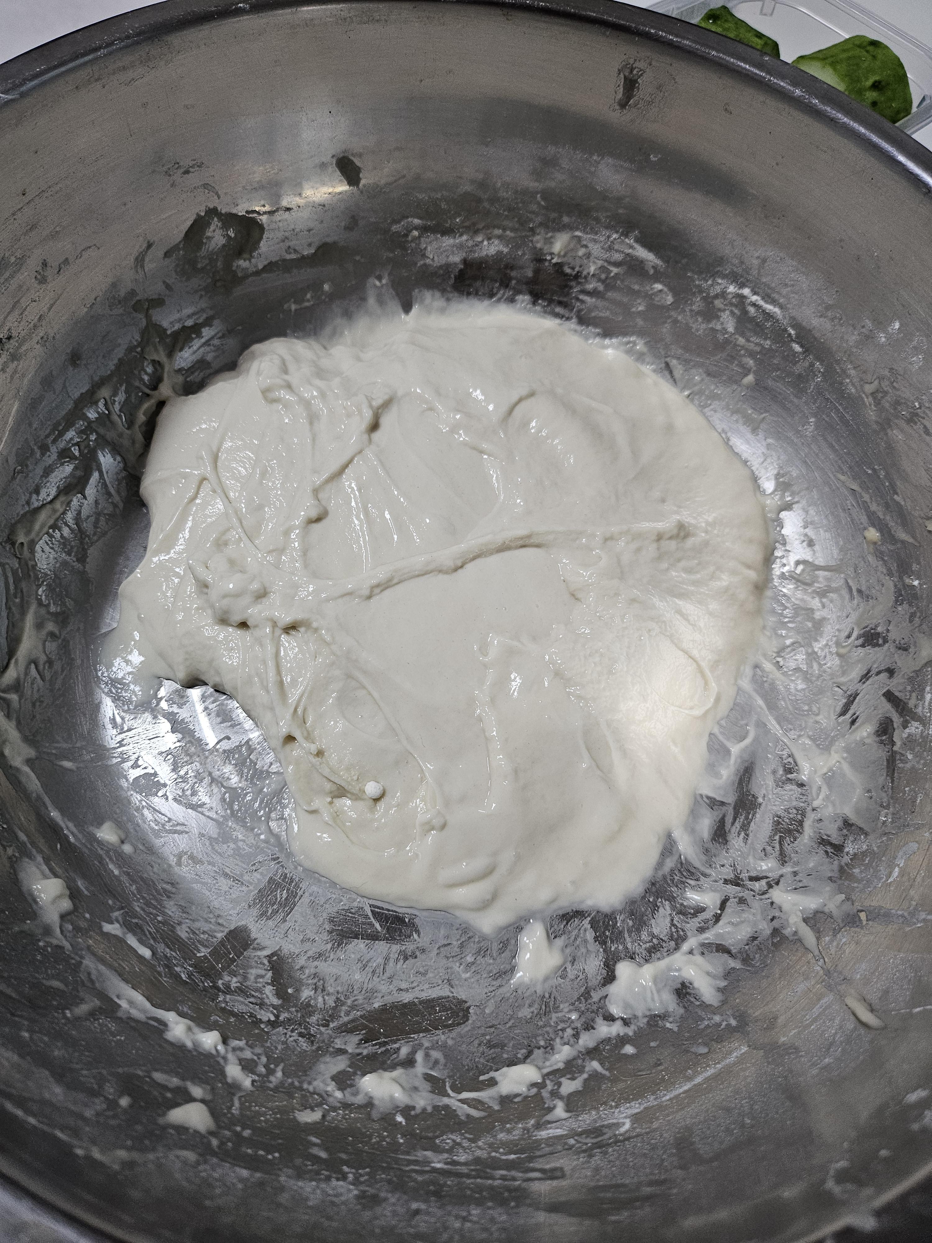 가루류를 모두넣고 섞다가 30분씩 네번 폴딩을 해주면 됩니다. 폴딩이란 다이소 돗자리를 접는 것처럼 필땐 좋았지만 접을 땐 어려운 행동인데요. 이리저리 달라붙어서 잘안되더라고요.너무 질척대서 손에 붙어버린것만 한바가지.