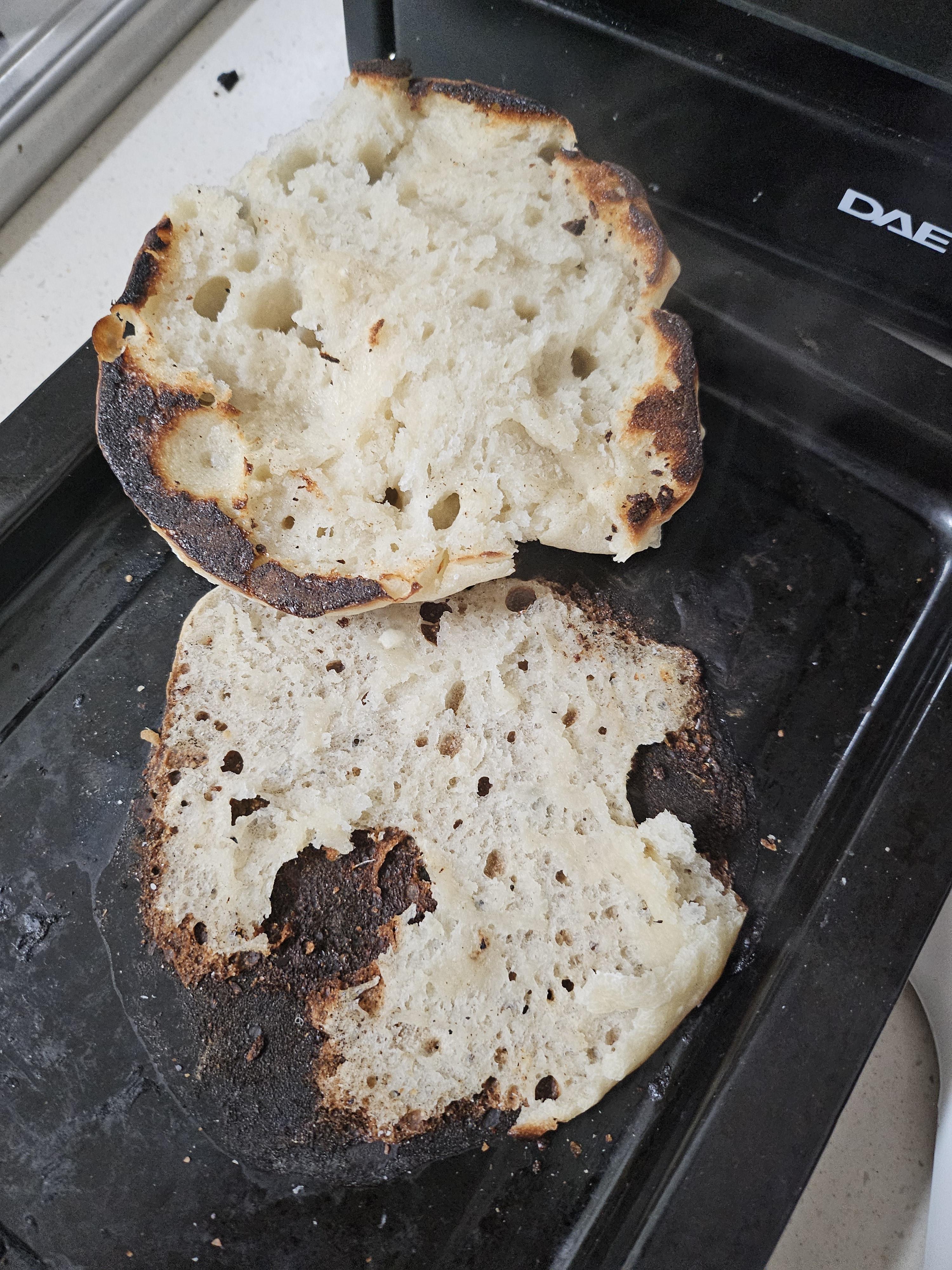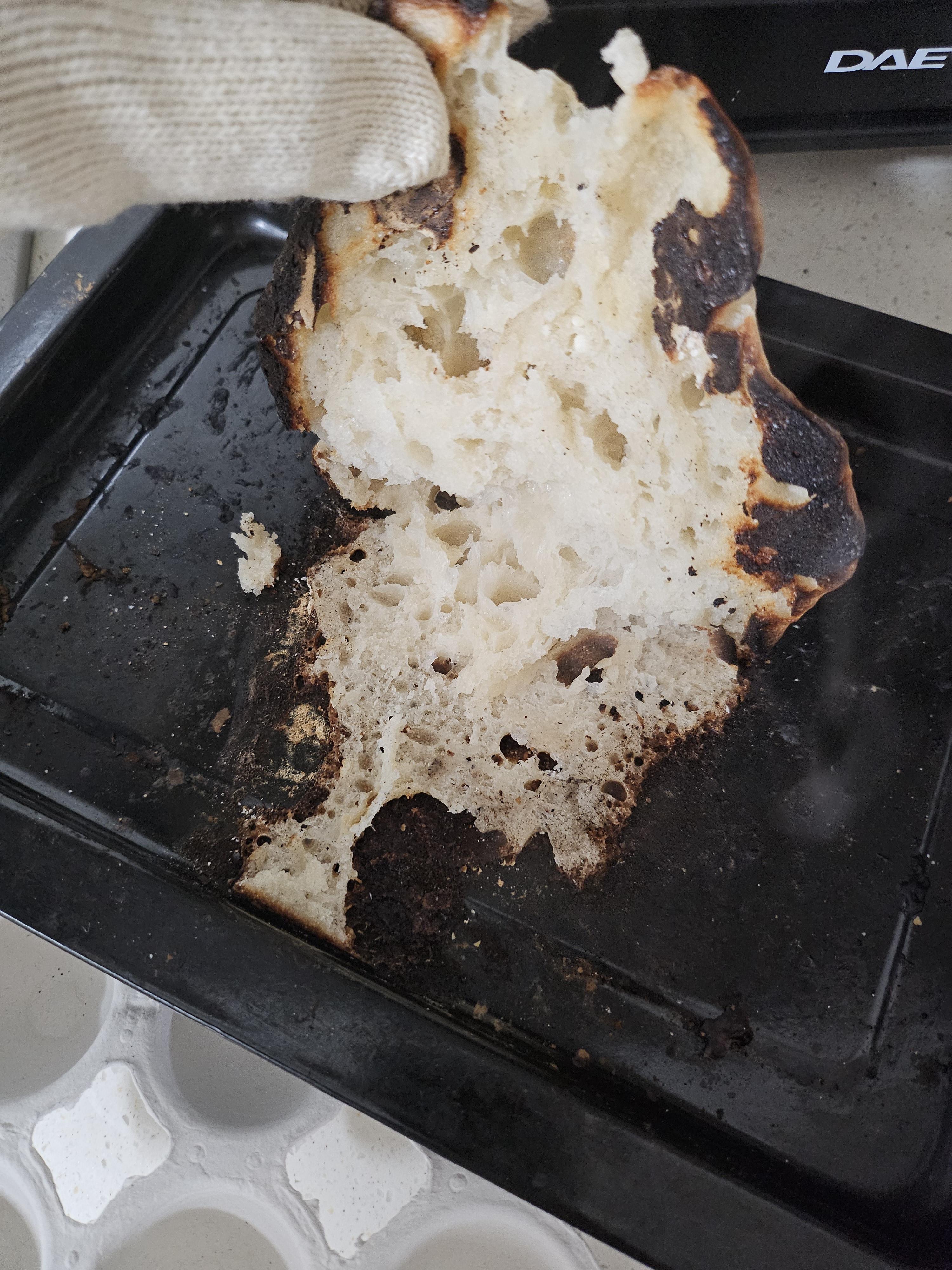이스트가 잘못됐거나 오븐발효가 부족했거나 폴딩이 잘안되서 왠지 잘안나올거라는 확신이 생김.근데 오븐안에서 마구 부풀길래 다시 기대함.