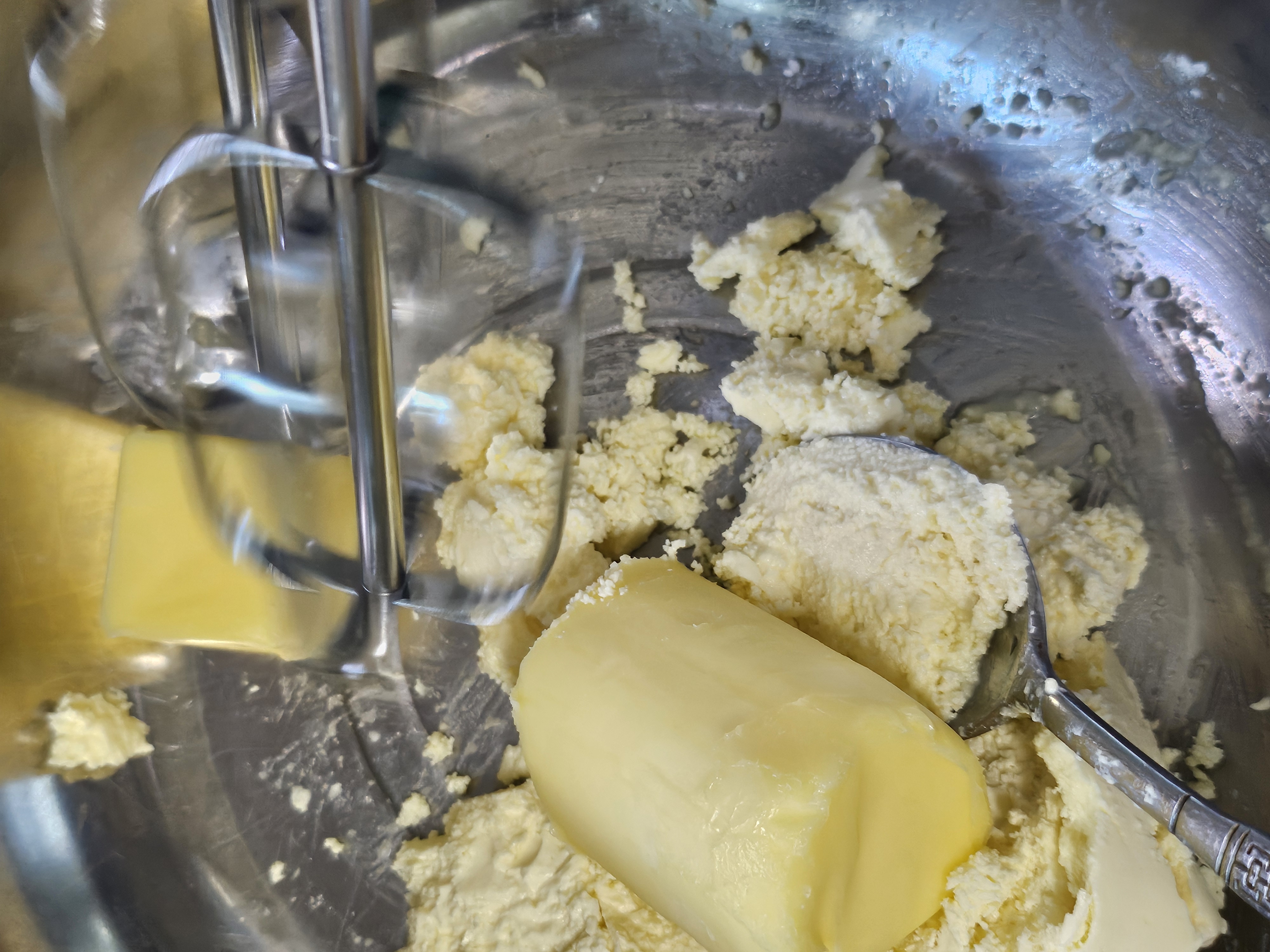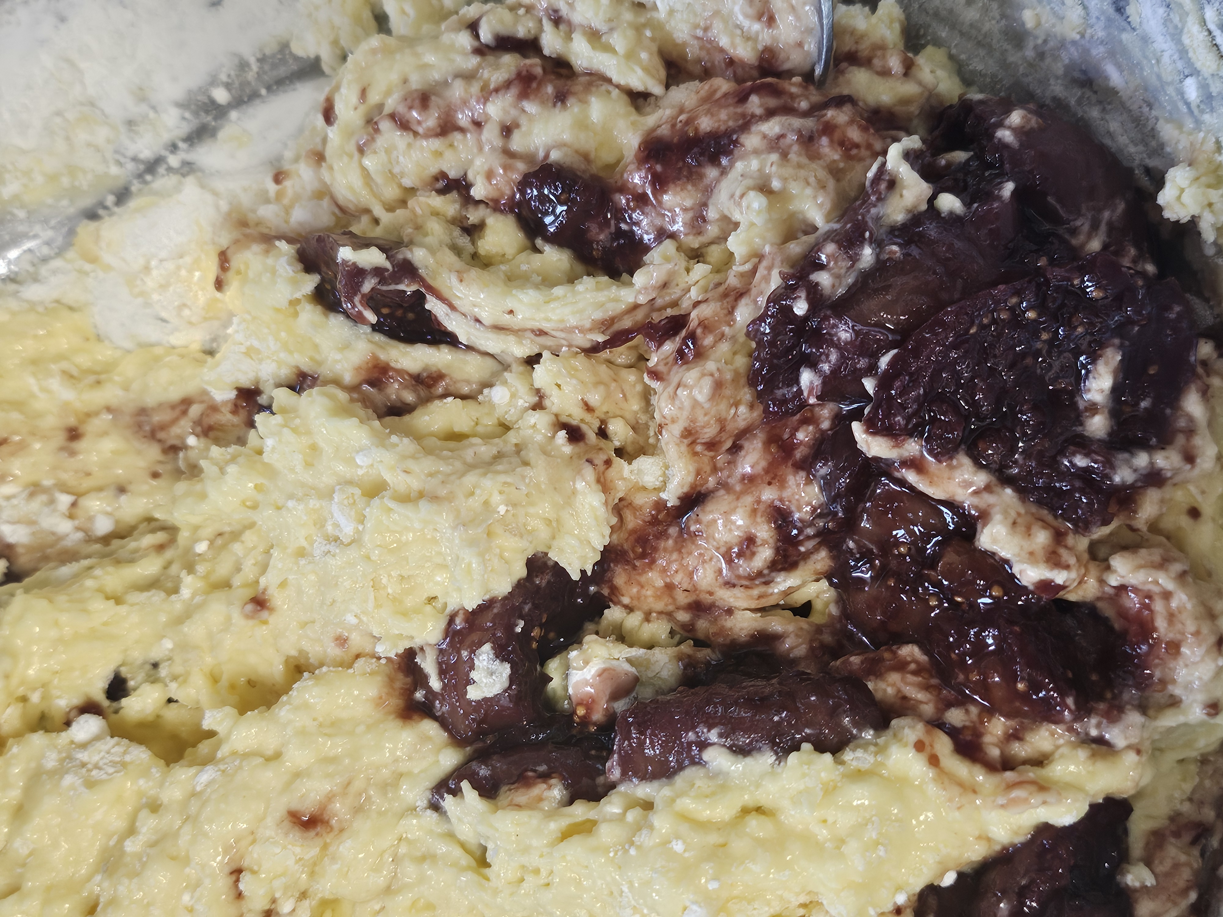 잠시 식을때까지 대기크림치즈(앵커) 100g, 박력분 150g, 버터(이즈니) 150g, 설탕 100g, 계란 3개, 베이킹파우더 6g, 소금 2g, 무화과 120g