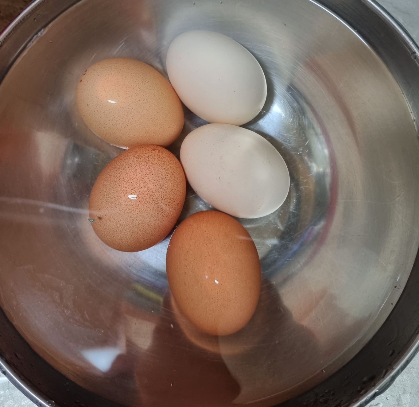 달걀을 삶은 후 찬물에 10분 정도 식힌다.