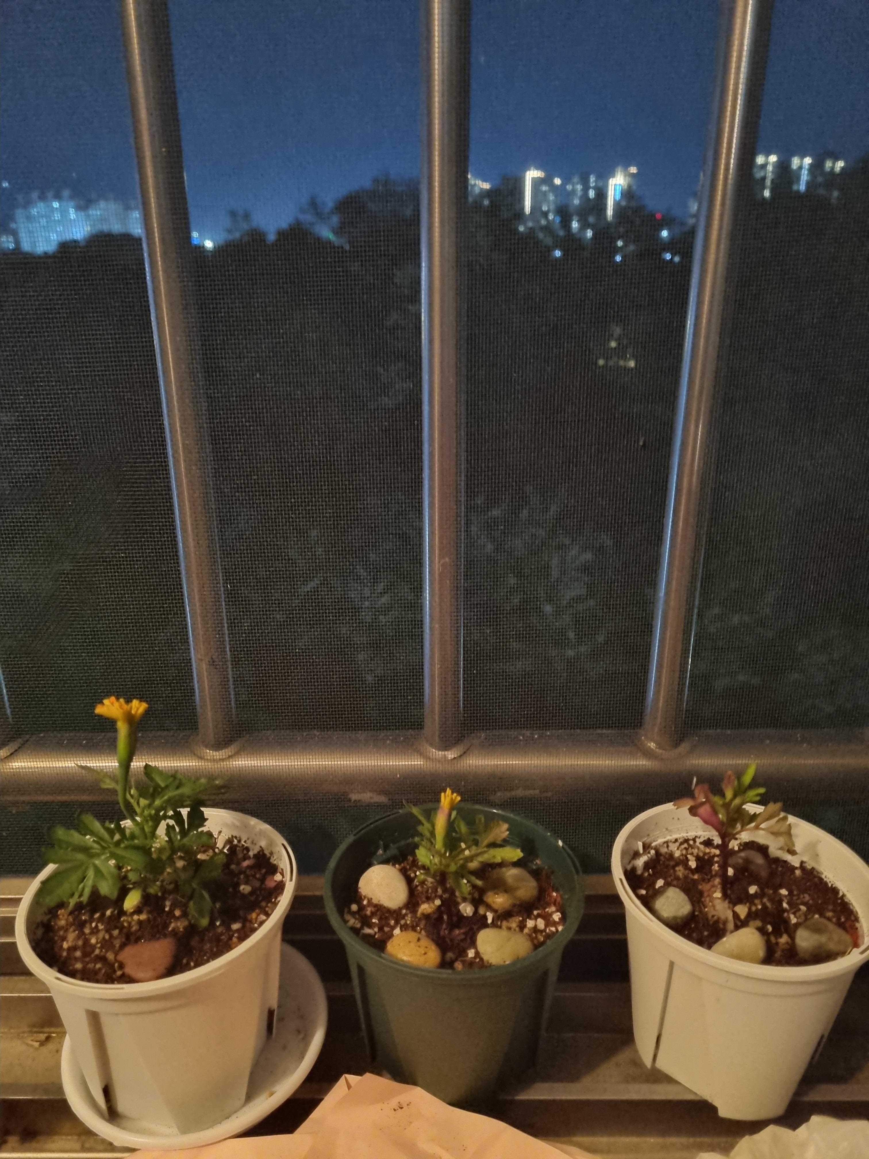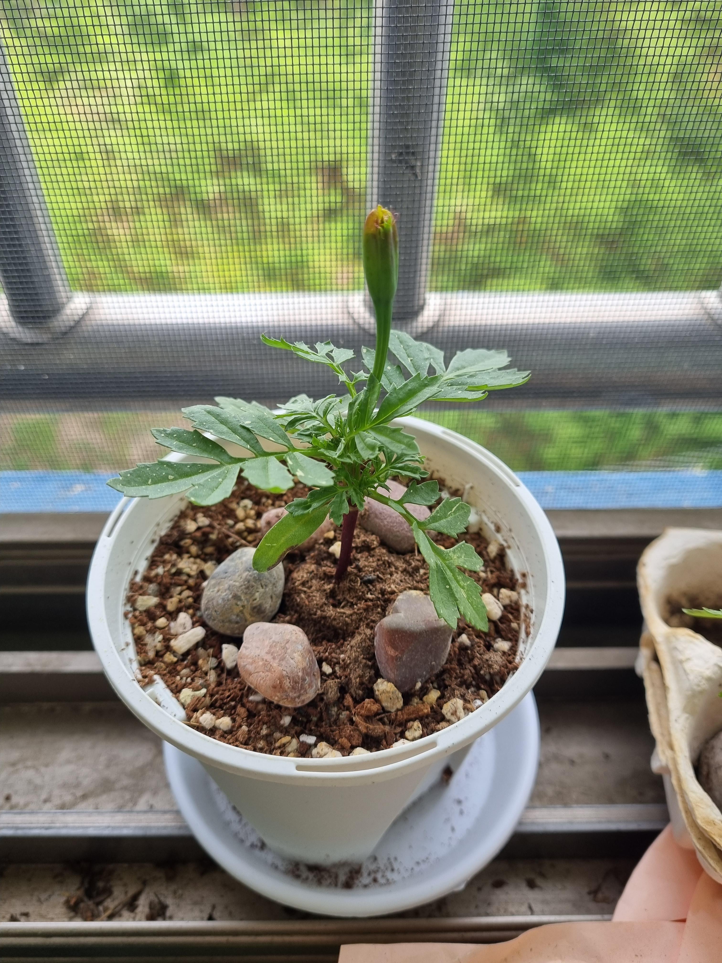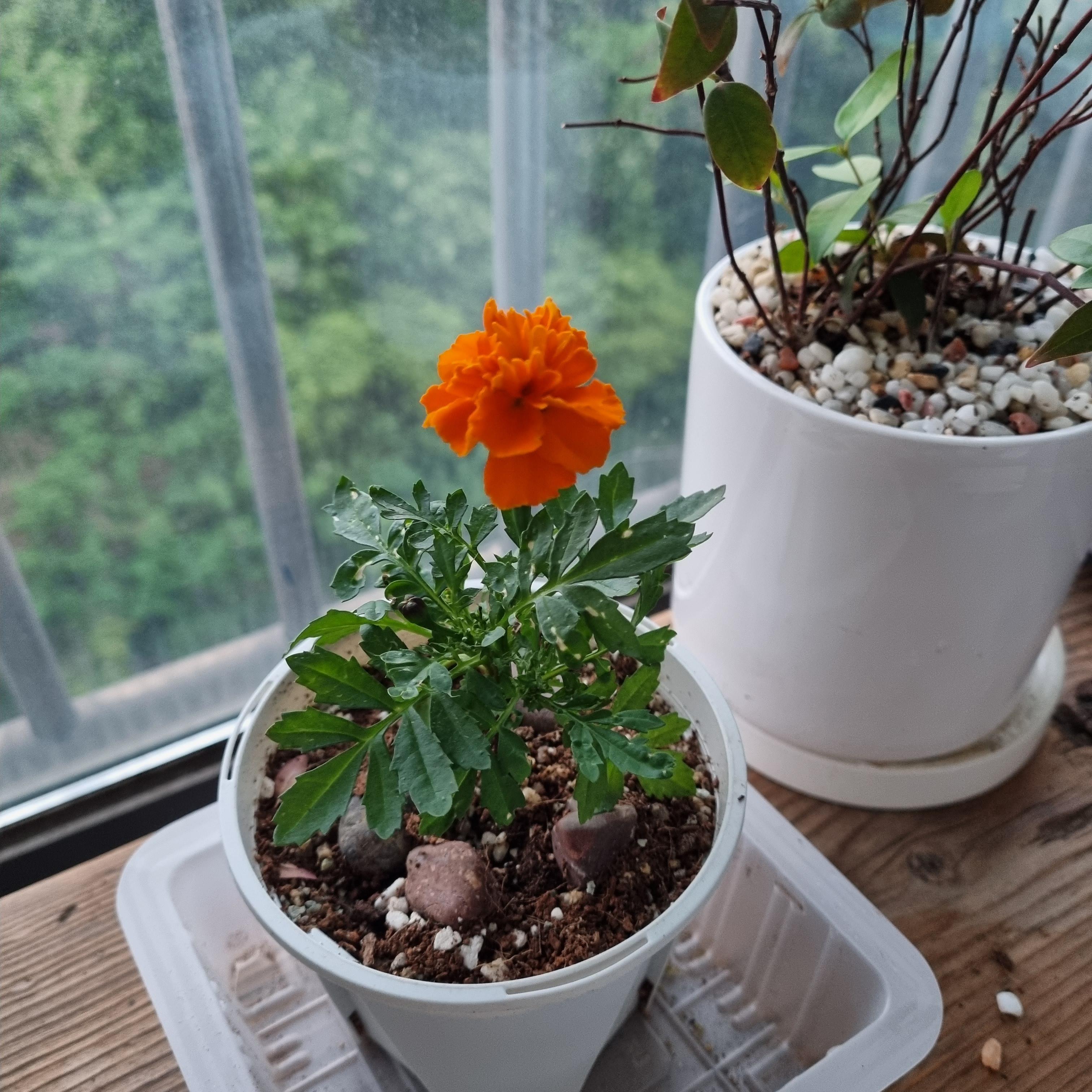 약 3주간 키워온 마리골드를 떠나보낸 게 너무 어이없다..다시 심었다. 잘 자라게 하려고 비 오는 밤에 뛰쳐나갔다. 빗물이 효과가 있었다.