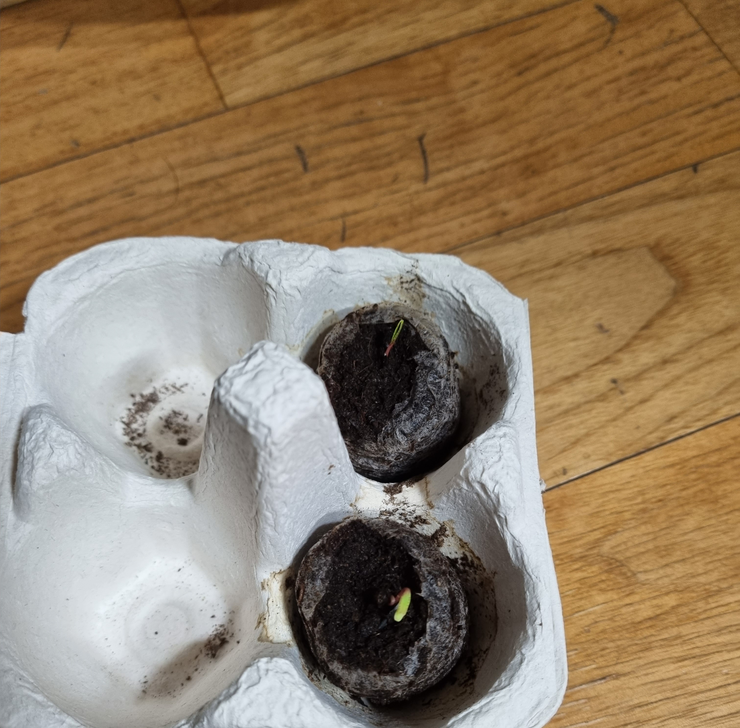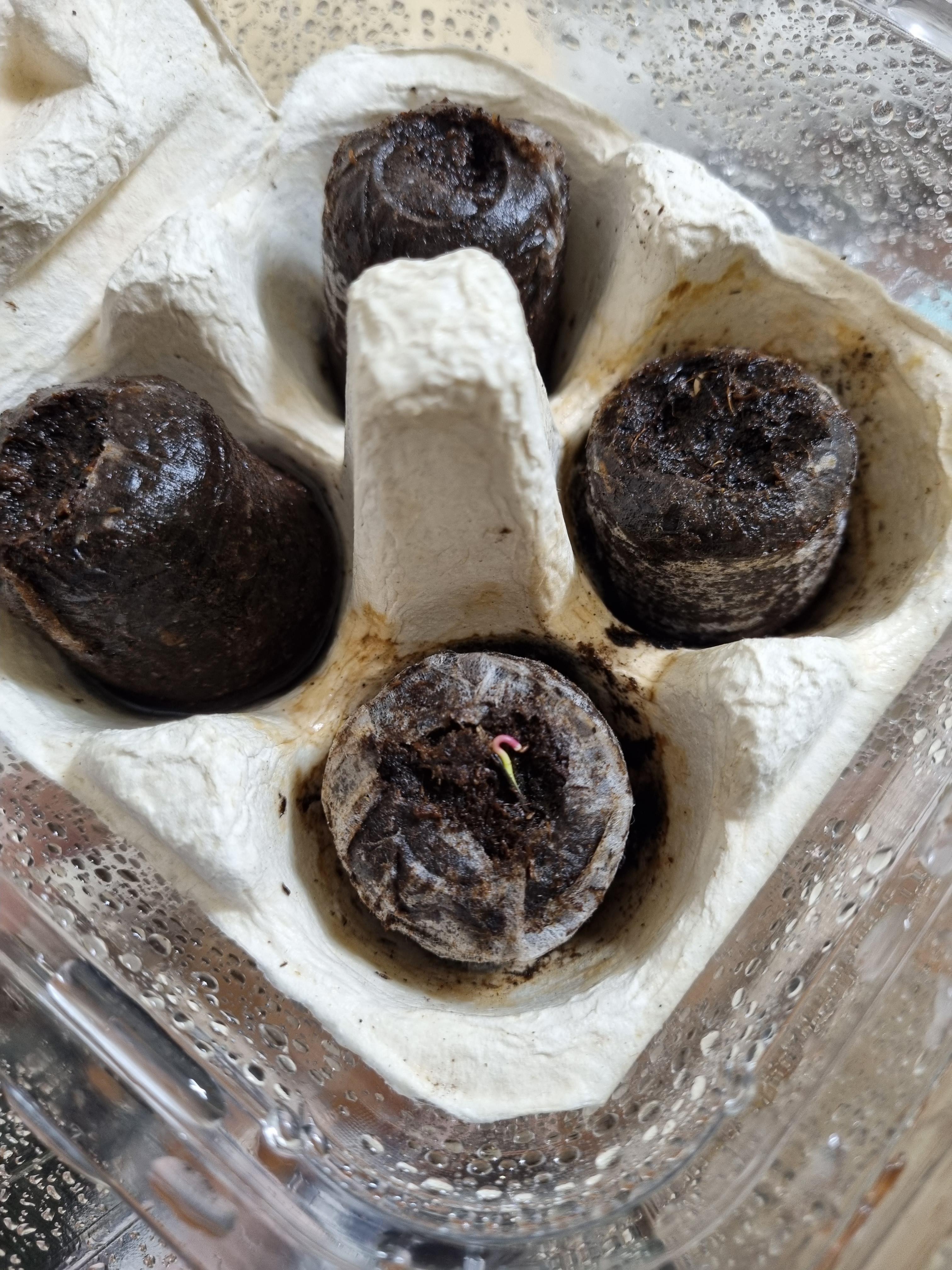 햇빛이 잘 드는 낮에는 베란다에 두어 햇빛을 받도록 한다.3일 / 전 날 싹이 하나 올라왔다. 근데 밤이 되니까 두 펠렛에서 다 싹이 났다. 발아율이 좋다.