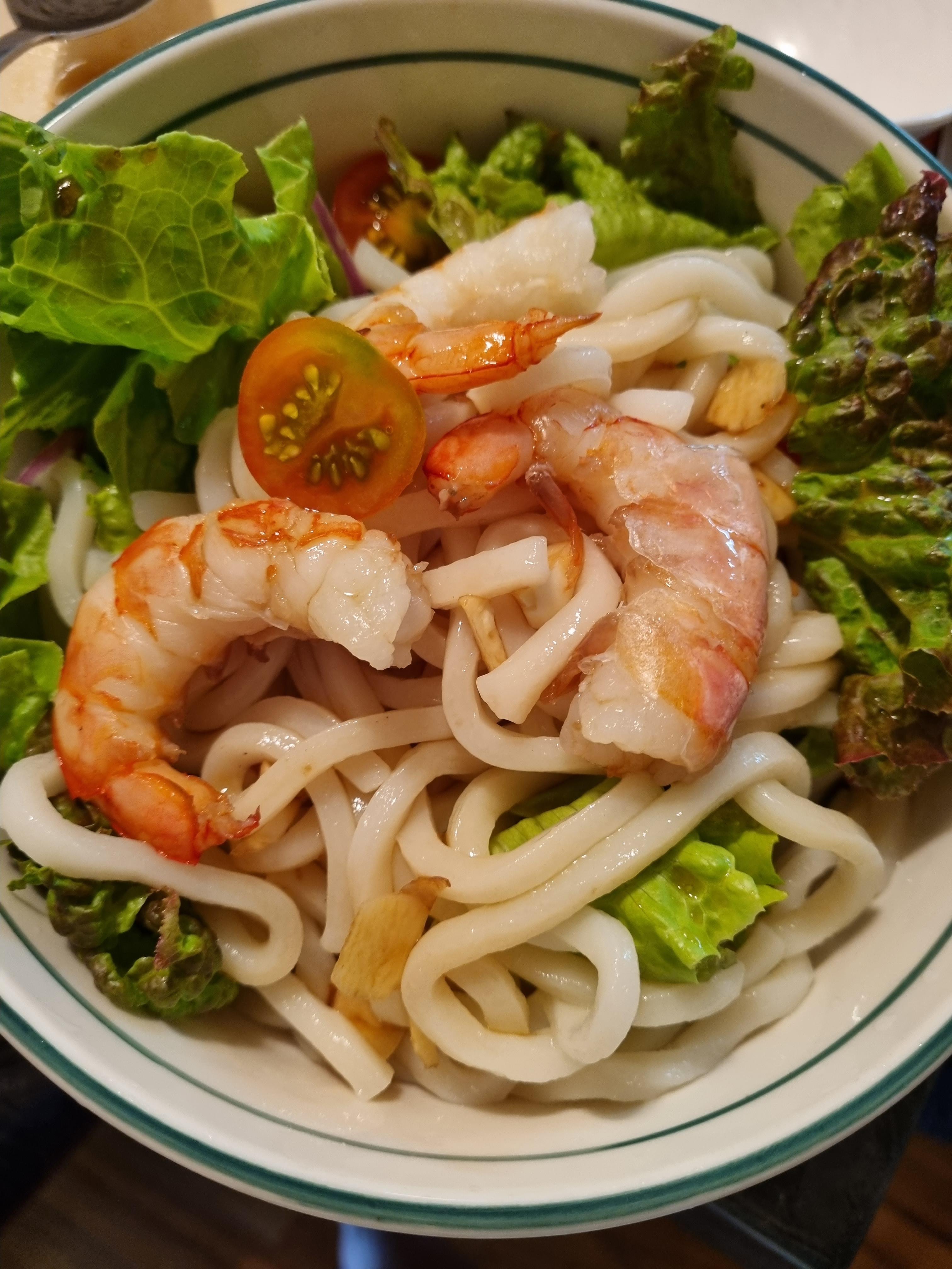 오리엔탈 소스만 넣고 비벼도 괜찮음.냉동새우 삶는다.