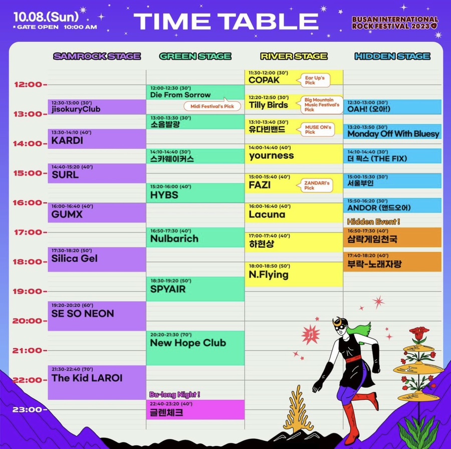 부지는 넓은데 야외라서 음악이 겹치더라. 그래서 최대한 안겹치게 시간대를 조정한 것 같다.