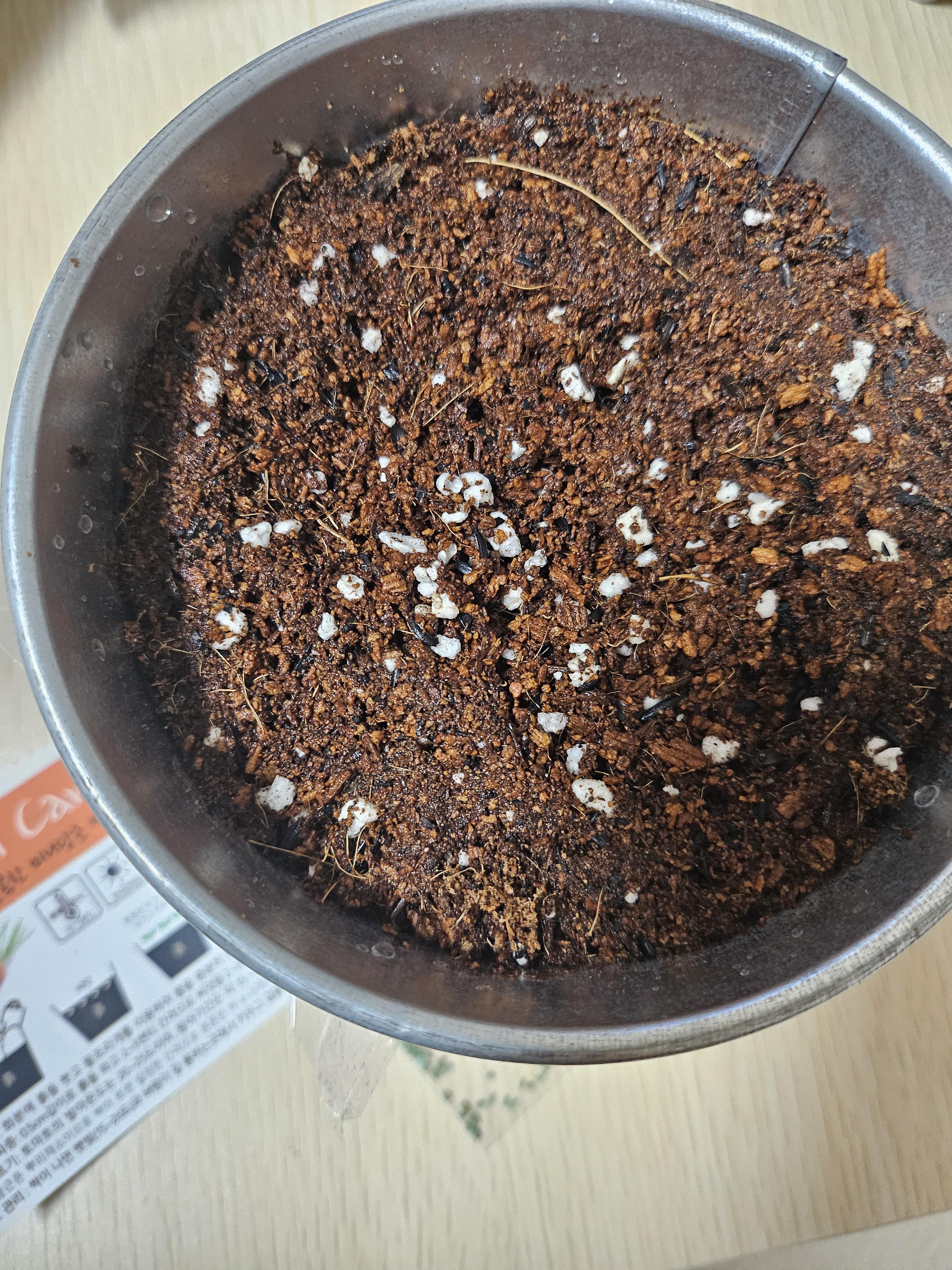 흙을 담고 구멍으로 물이 흘러 나올 정도로 물을 흠뻑 줍니다.